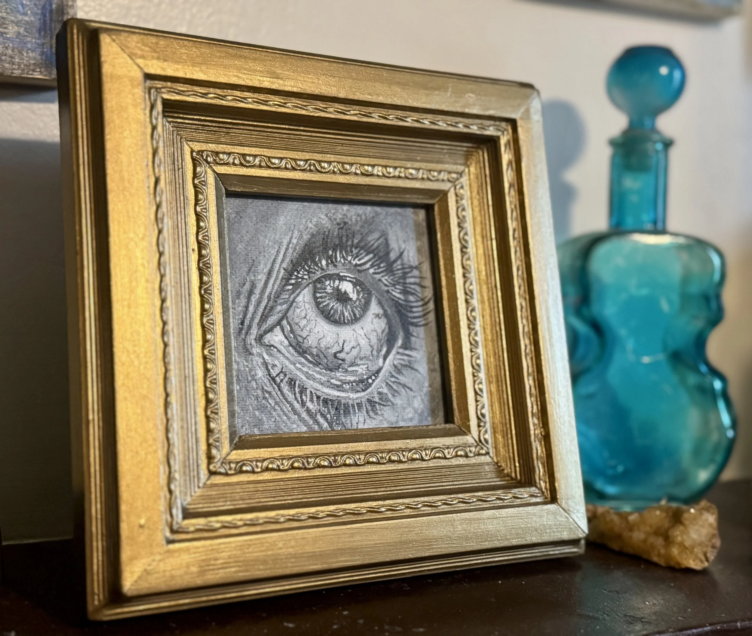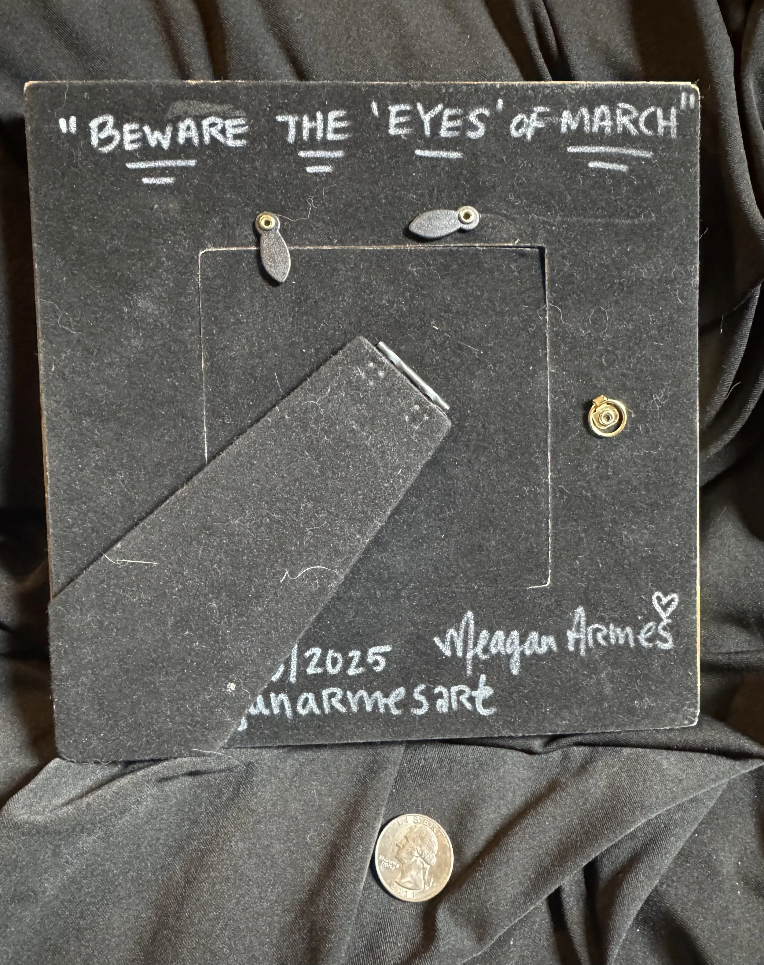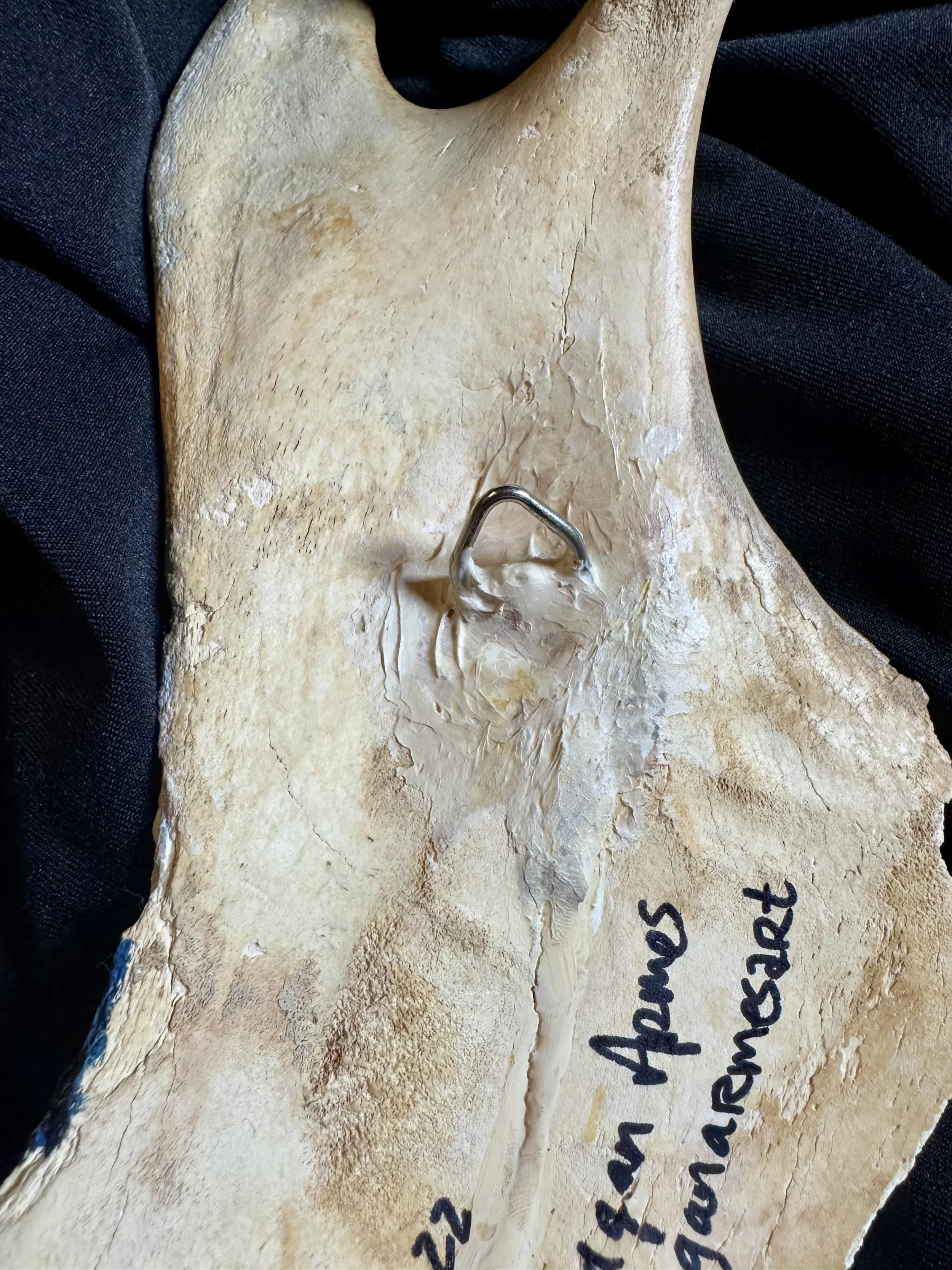 Acrylic painting on 13” long bovine jaw bone. Sealed with archival varnish. Sturdy hanger installed. 7.25×13×1.25 in.